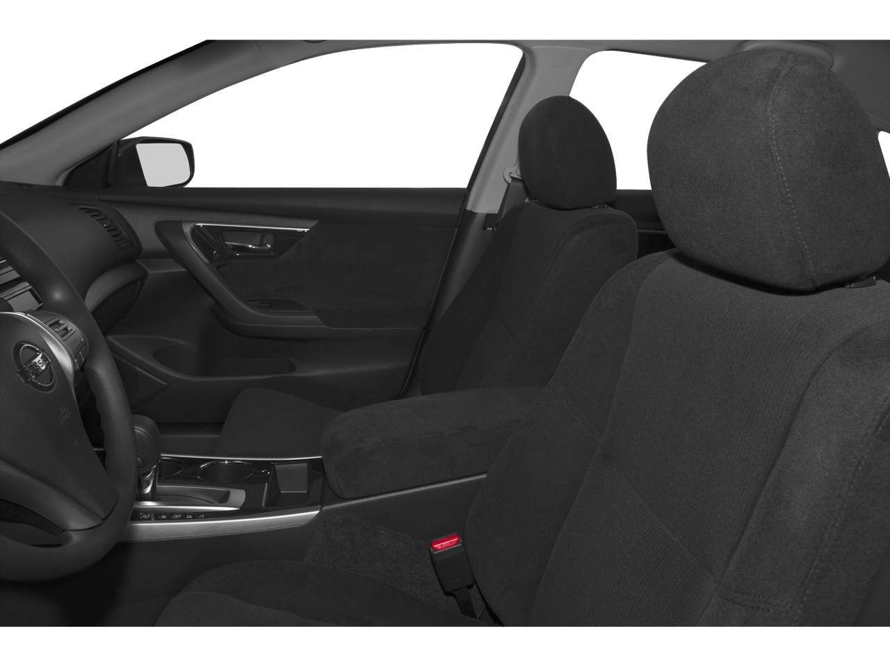 The sleek Super Black exterior with body-colored bumpers and chrome door handles project a refined and sophisticated appearance. The 16-inch steel wheels with full covers and the black grille with chrome surround enhance the Altima's bold look. Practicality meets style with the power door mirrors and variable intermittent wipers, ensuring clear visibility in all weather conditions.