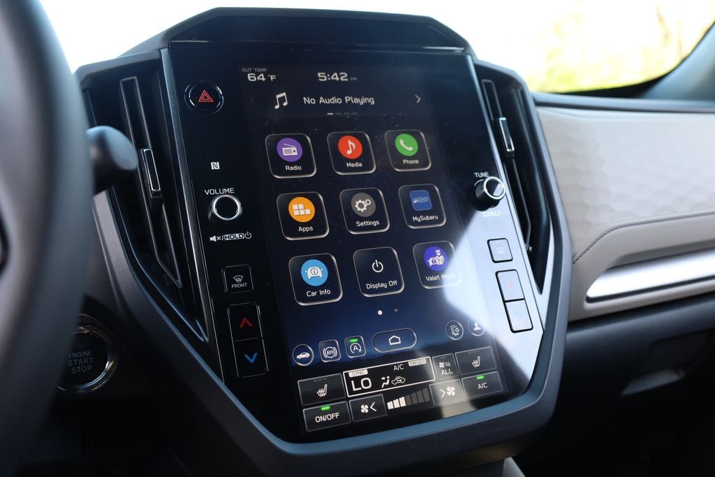 Stay connected and entertained on the go with the advanced technology features of the 2026 Subaru Forester Premium. The 11.6 inch primary display with a primary monitor touchscreen serves as the hub for all your infotainment needs. Seamlessly integrate your smartphone with MySubaru/Apple CarPlay/Android Auto smart device wireless mirroring. Enjoy your favorite music and podcasts with Bluetooth® wireless audio streaming. The vehicle is equipped with 4 USB ports to keep your devices charged and ready. The steering wheel mounted audio controls allow you to adjust the volume and change tracks without taking your hands off the wheel. Use the voice activated audio controls to manage your music and other functions with ease. Stay informed with the ECO feedback display gauge and the exterior temperature display. The integrated roof audio antenna ensures optimal radio reception.